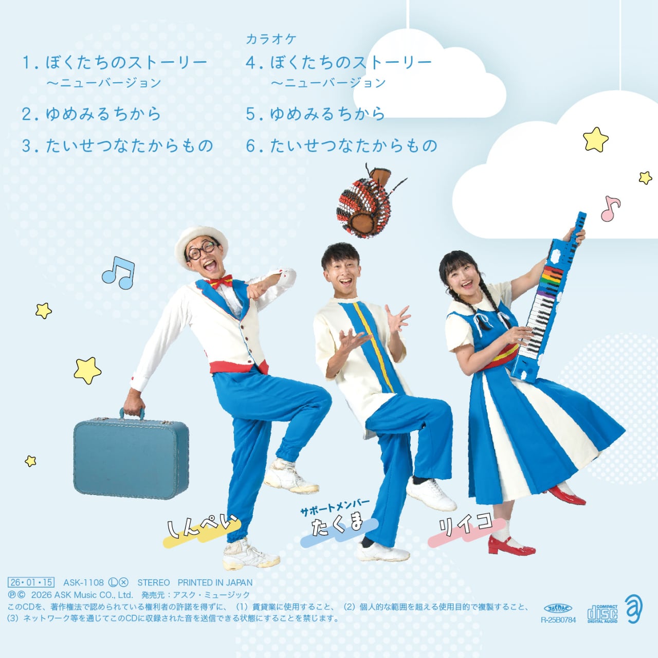 LIVEで人気の「ぼくたちのストーリー」、オリジナル曲「ゆめみるちから」、卒園ソング「たいせつなたからもの」を収録したあおぞらワッペンのミニアルバム。